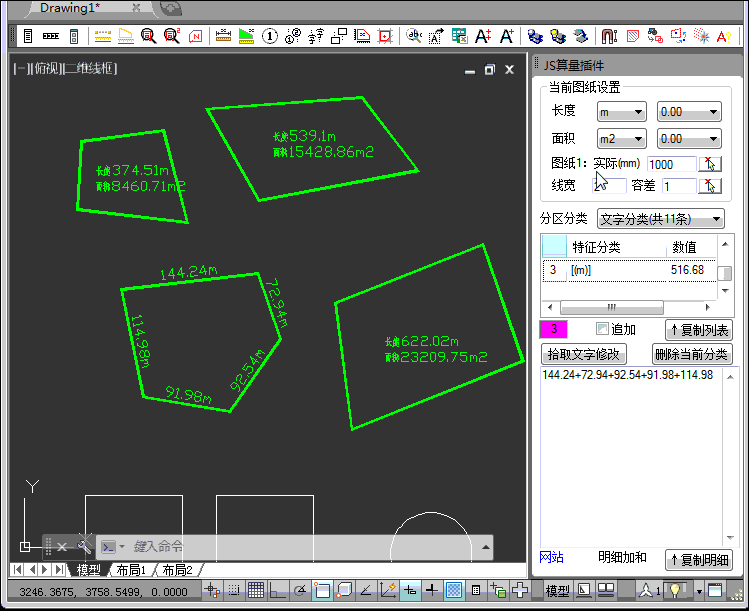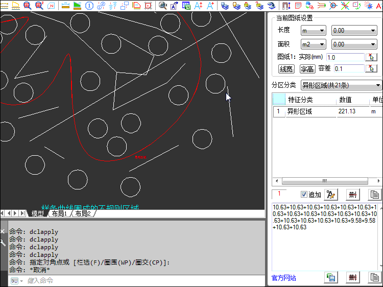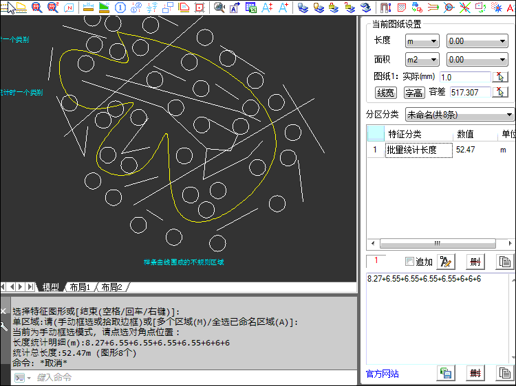 同Pline操作即可弧线可闭合,并智能标注分段,显示分段明细和总长,提取总长 |