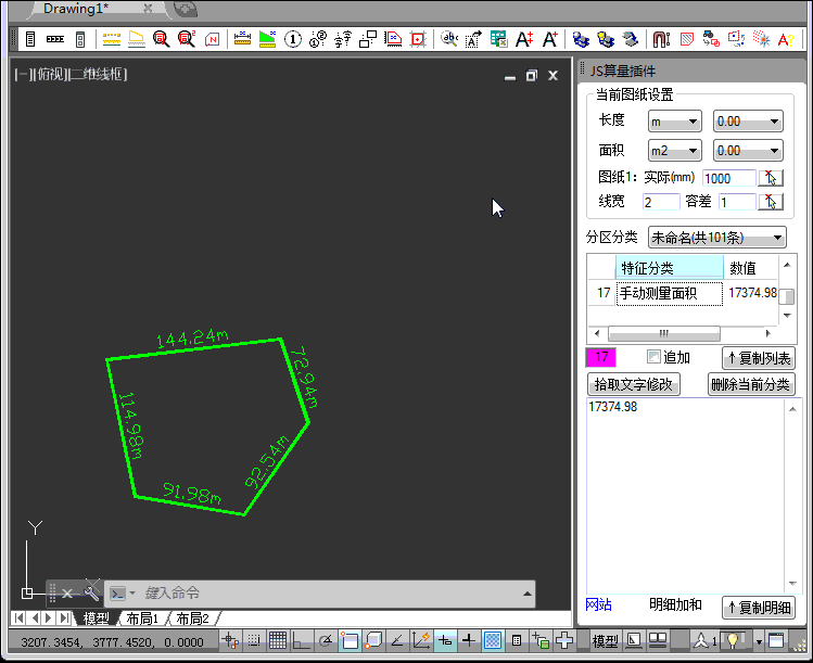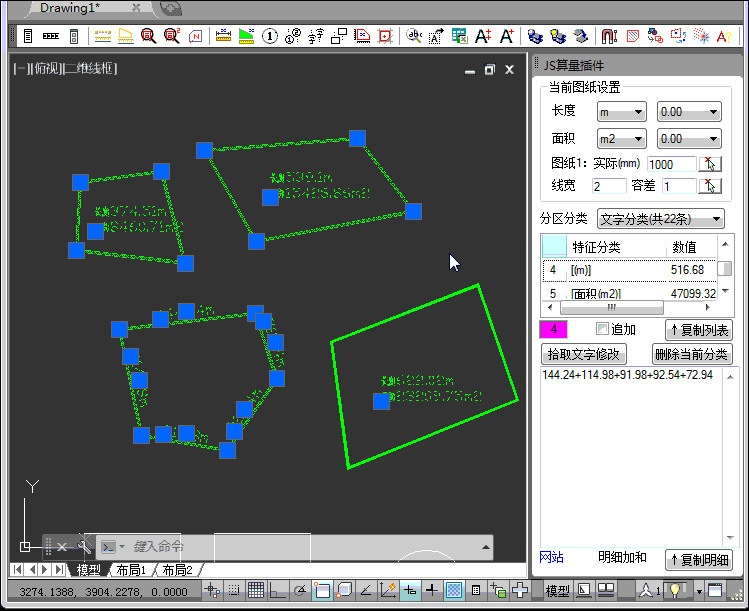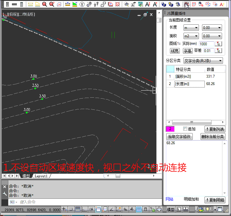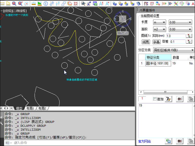 创新功能生成自动闭合的边界多段线,特别是对没有面积属性或面积错误的填充特别管用,同时给出分析数据 |