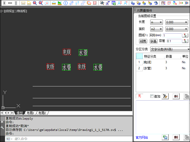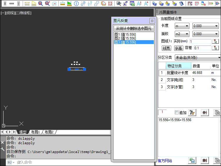 算量实时记录展示(命令窗口、面板保存在对应xml中) | |